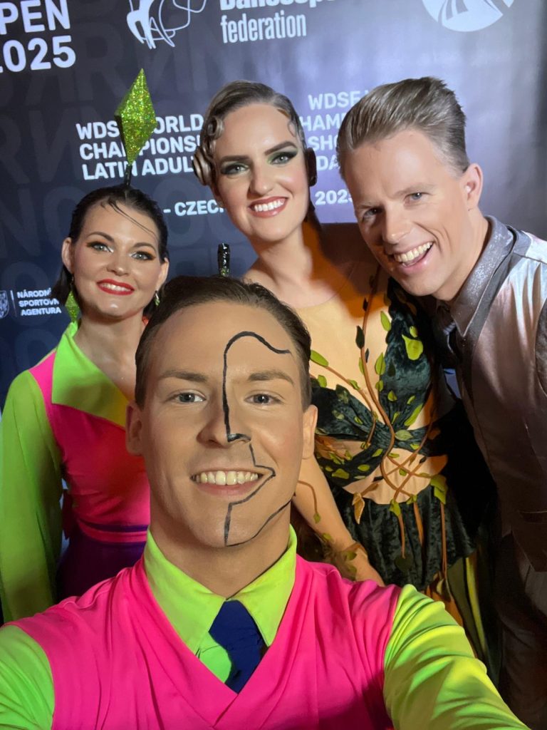 Onze reis naar het Wereldkampioenschap Showdance Standaard 2025 begon op donderdagochtend 16 oktober. Vertrekhal 2 was het verzamelpunt én het officiële startpunt van dit bijzondere avontuur. De dansparen Paul & Jaimy en Jamie & Lesley reisden samen met Bert, Jack, Maria, Adrie en Carola af richting het prachtige Wenen, om van daaruit verder te reizen naar Brno (Tsjechië), waar het WK zou plaatsvinden.