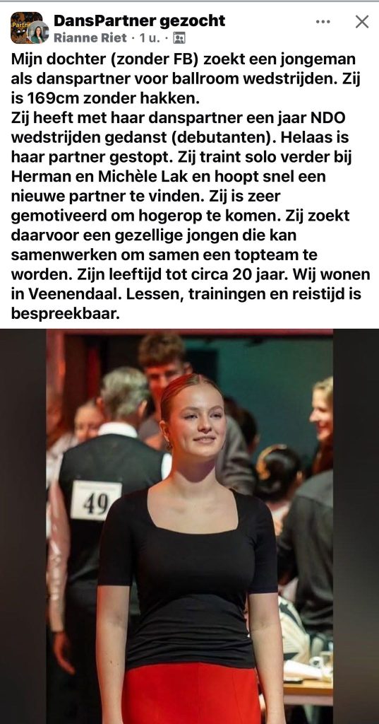 Helaas heeft Abel besloten om te stoppen met dansen. Dus nu ben ik op zoek naar een nieuwe danspartner.